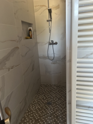 Bagno al piano terra, tre camere matrimoniali al primo piano.