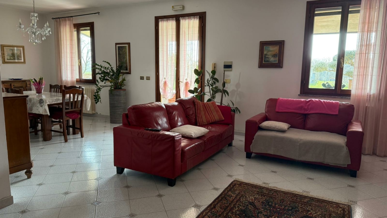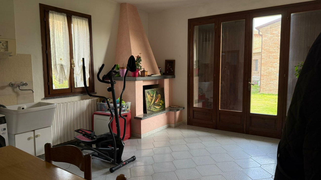 Bella villa singola di nuova costruzione a Caprile di Codigoro composta da cucina, ampio soggiorno con camino, bagno e lavanderia al piano terra.
