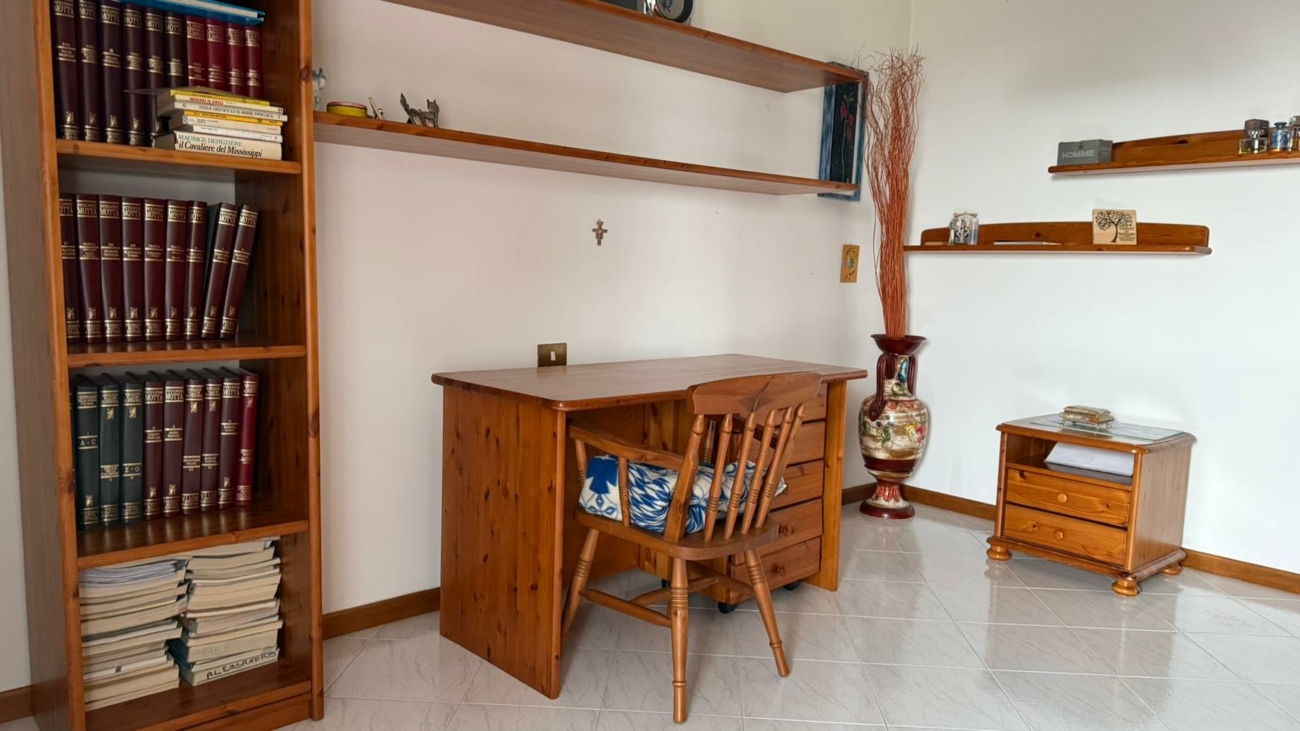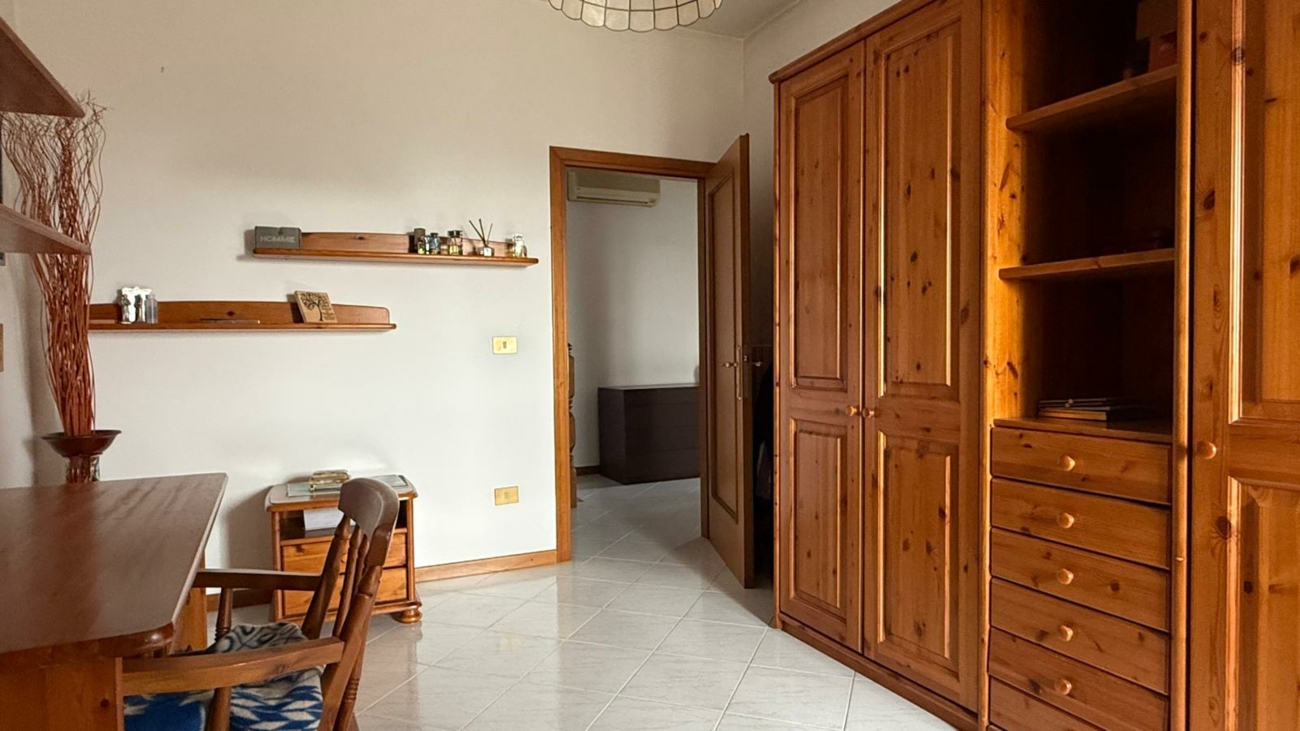 Camera matrimoniale, cameretta e bagno al primo piano.